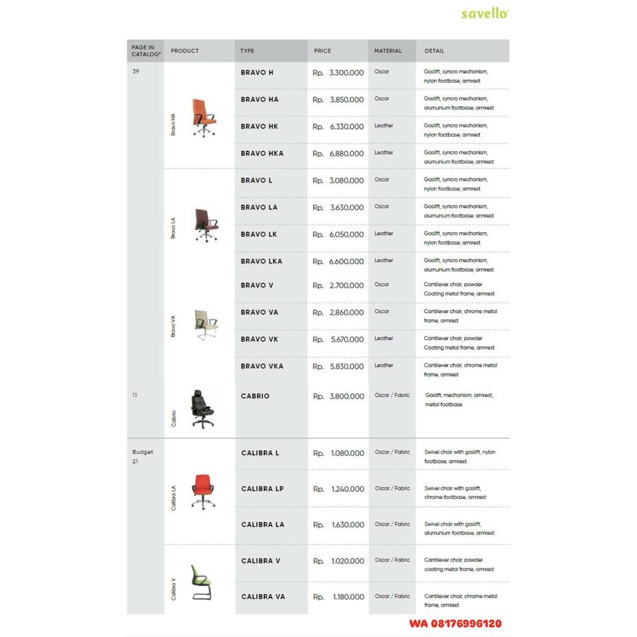 Kursi Kantor Savello BRAVO H HA HK HKA L LA LK LKA V VA VK VKA, CABRIO, CALIBRA L LP LA V VA