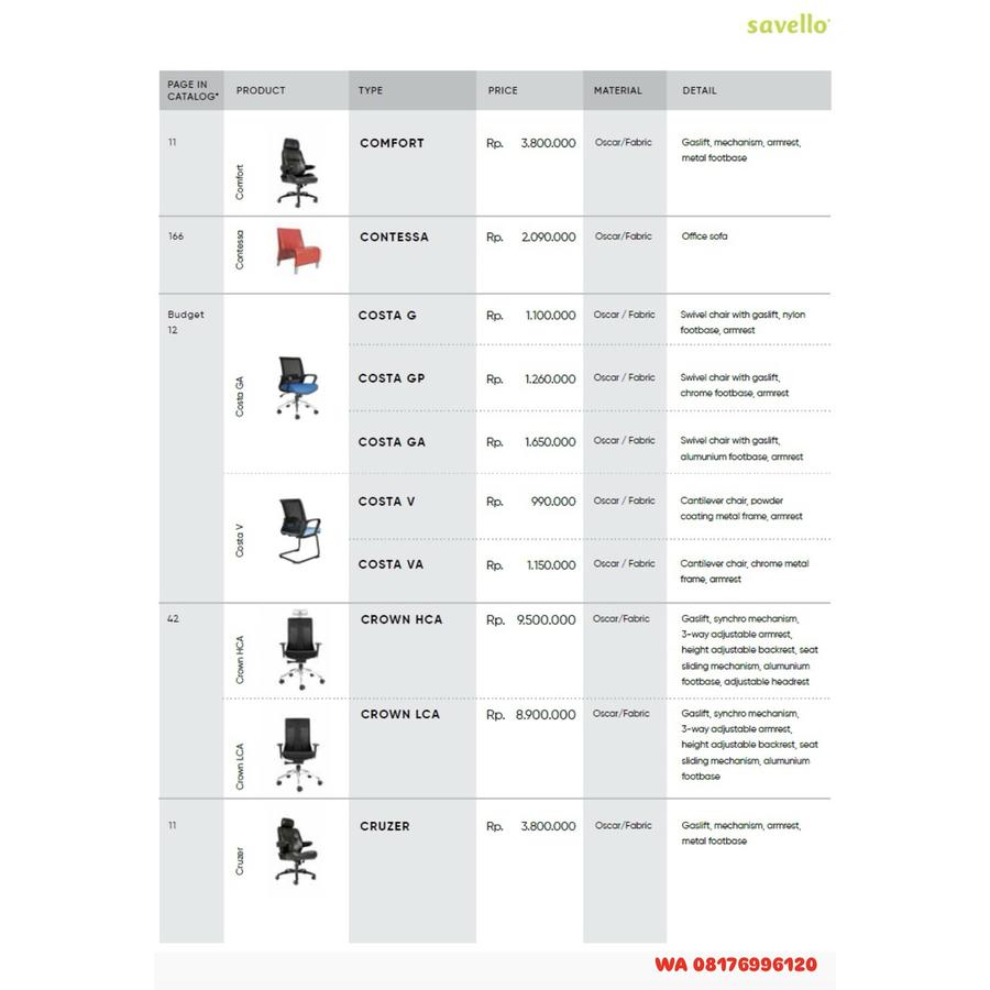Kursi Kantor Savello COMFORT, CONTESSA, COSTA G GP GA V VA, CROWN HCA LCA, CRUZER