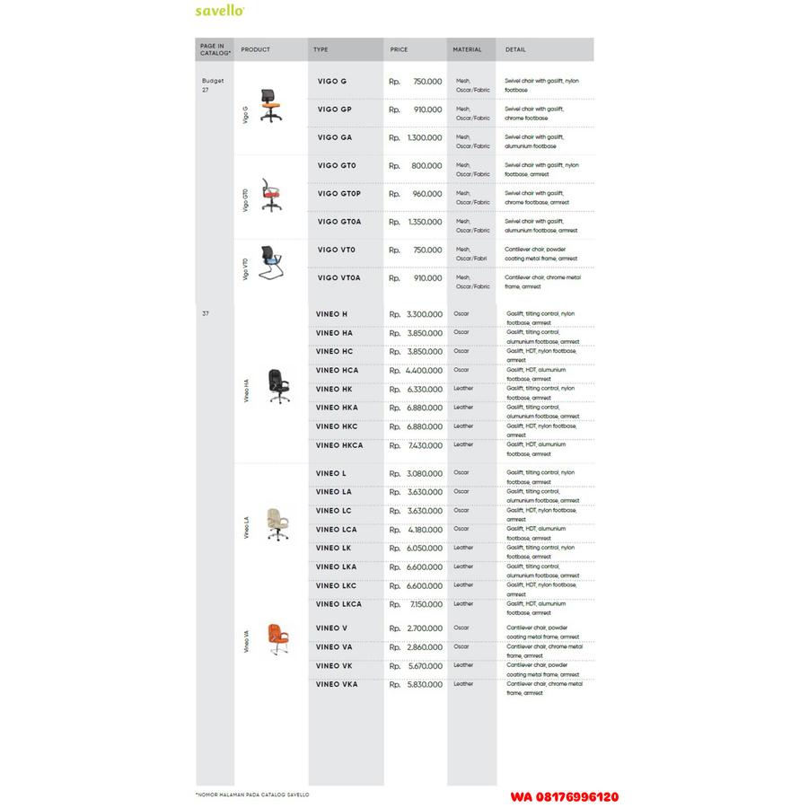 Kursi Kantor Savello VIGO G GP GA GT0 GT0P GT0A VT0 VT0A & VINEO H HA HC HCA HK HKA HKC HKCA L LA LC LCA LK LKA LKC LKCA V VA VK VKA